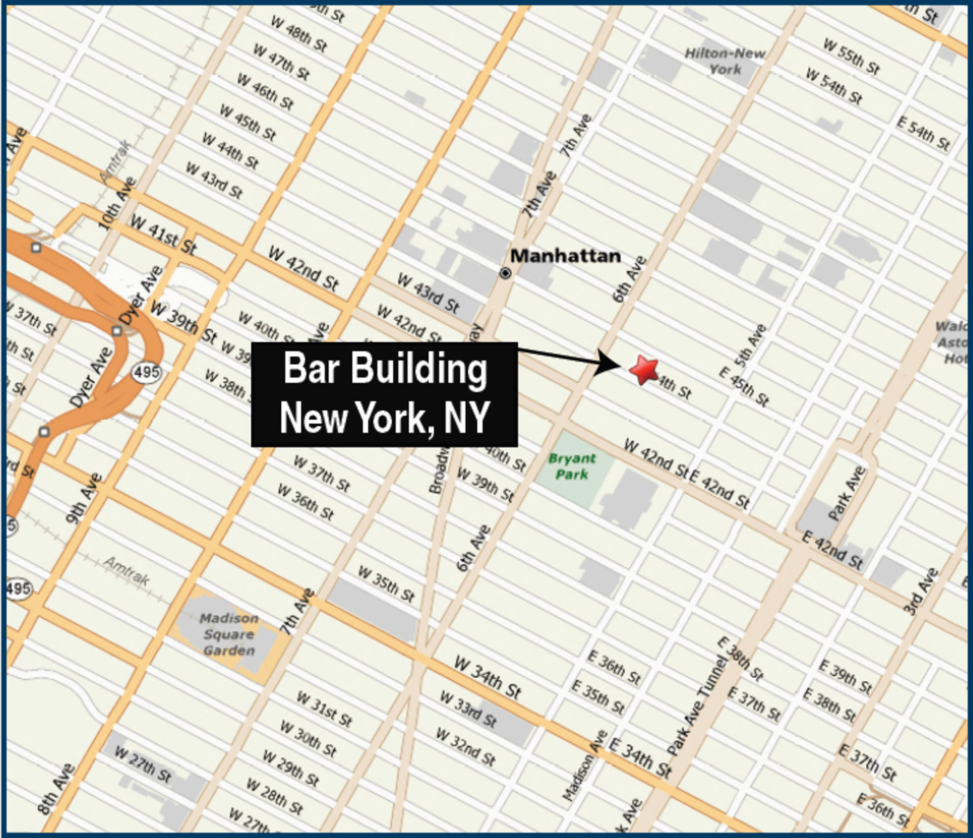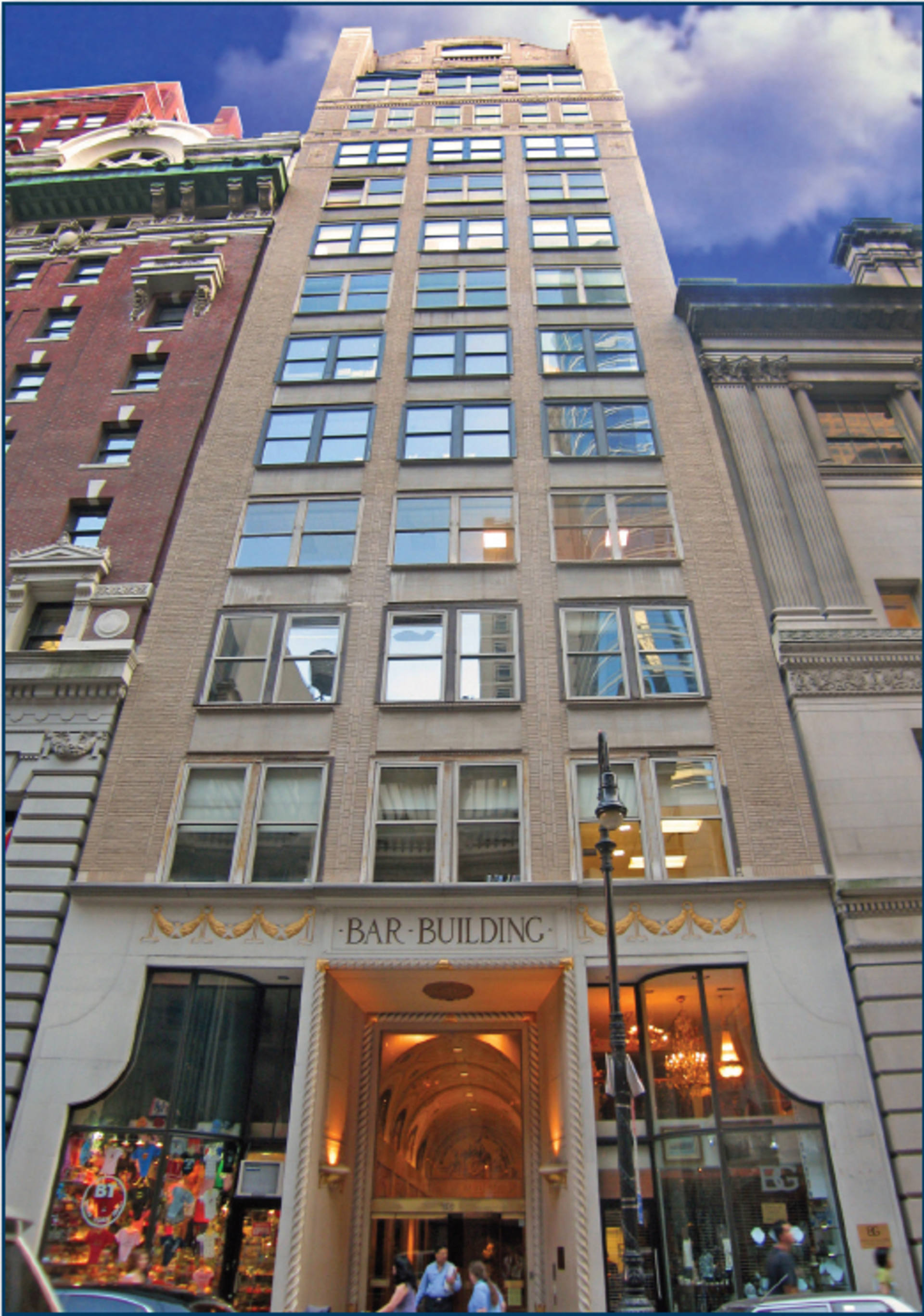 The Bar Building, a widely-known Landmark property, is an established “signature” building in the premiere 44th Street business corridor of the Grand Central District, with easy access to the Times Square and Rockefeller Center Districts of Midtown Manhattan.