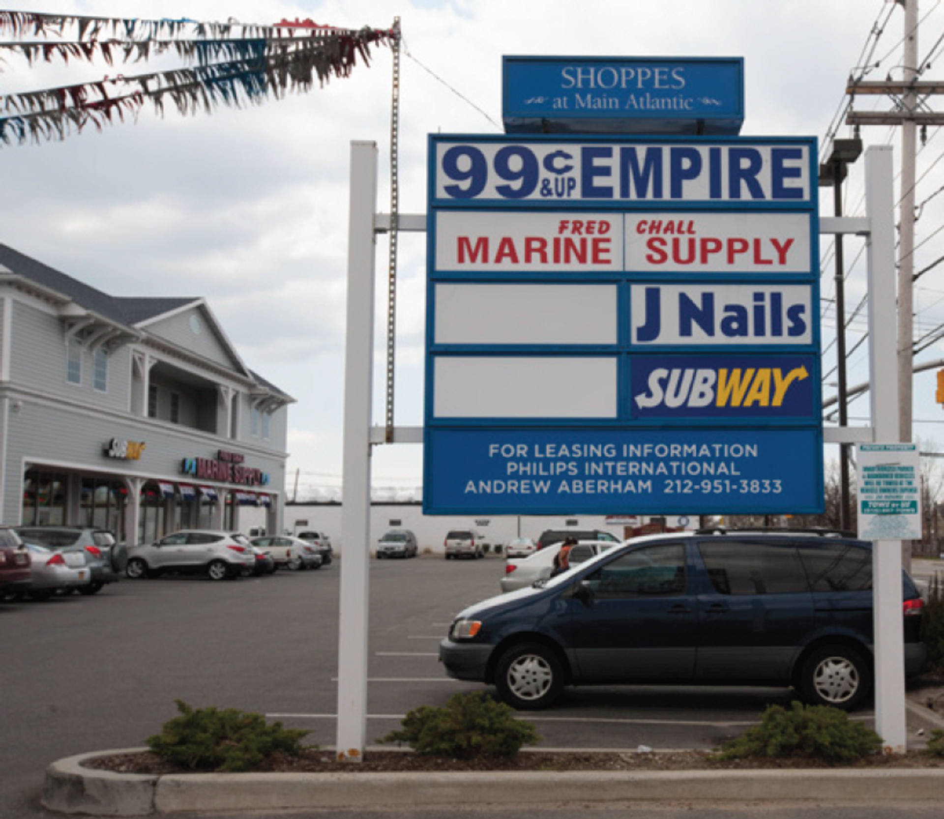 Retailers include Subway, Fred Chall Marine Supply, and Montana's Pizza