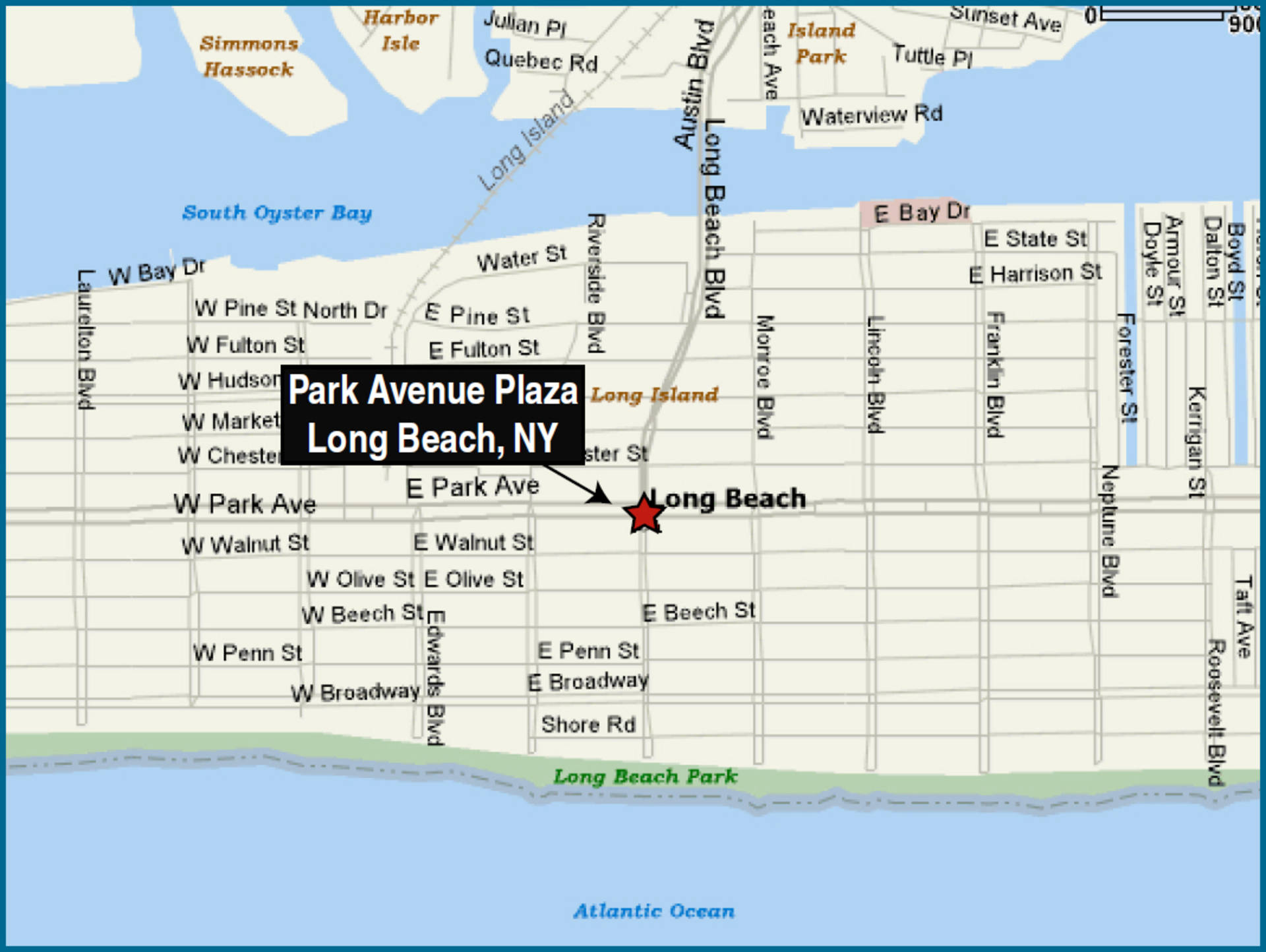 - Park Avenue Plaza is located at the intersection of East Park Avenue and Long Beach Road, city of Long Beach (Nassau County), Long Island, N.Y.