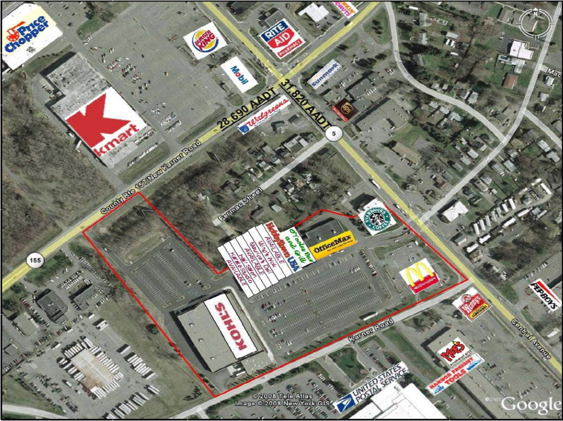 - 31,820 AADT (Intersection of NYS Rt 5 and NYS Rt 155) per NYS DOT 2006