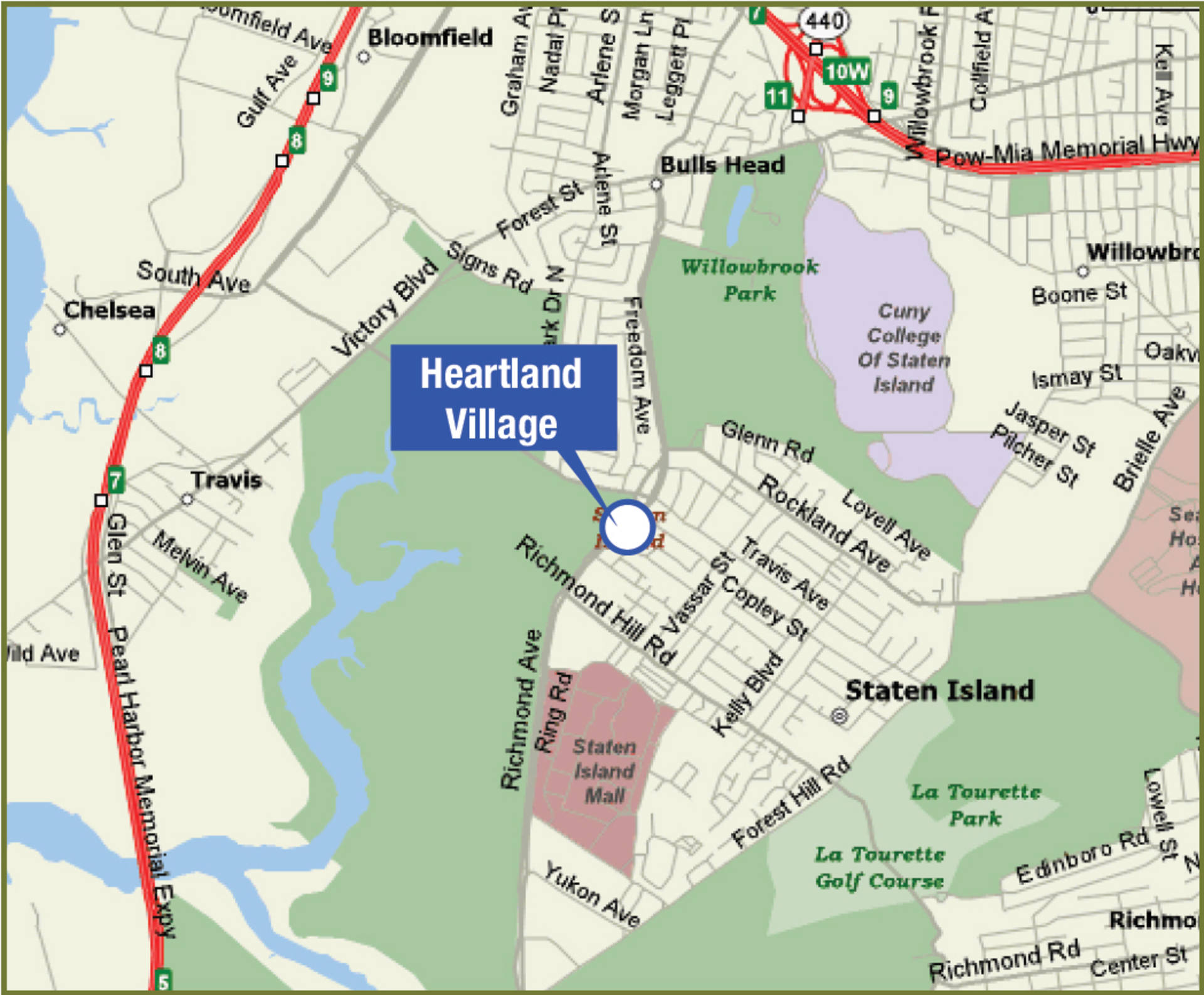 - Heartland Village Shopping Center is located 3/4 mile north of the Staten Island Mall, adjacent to Barnes and Noble and adjoining regional strip centers